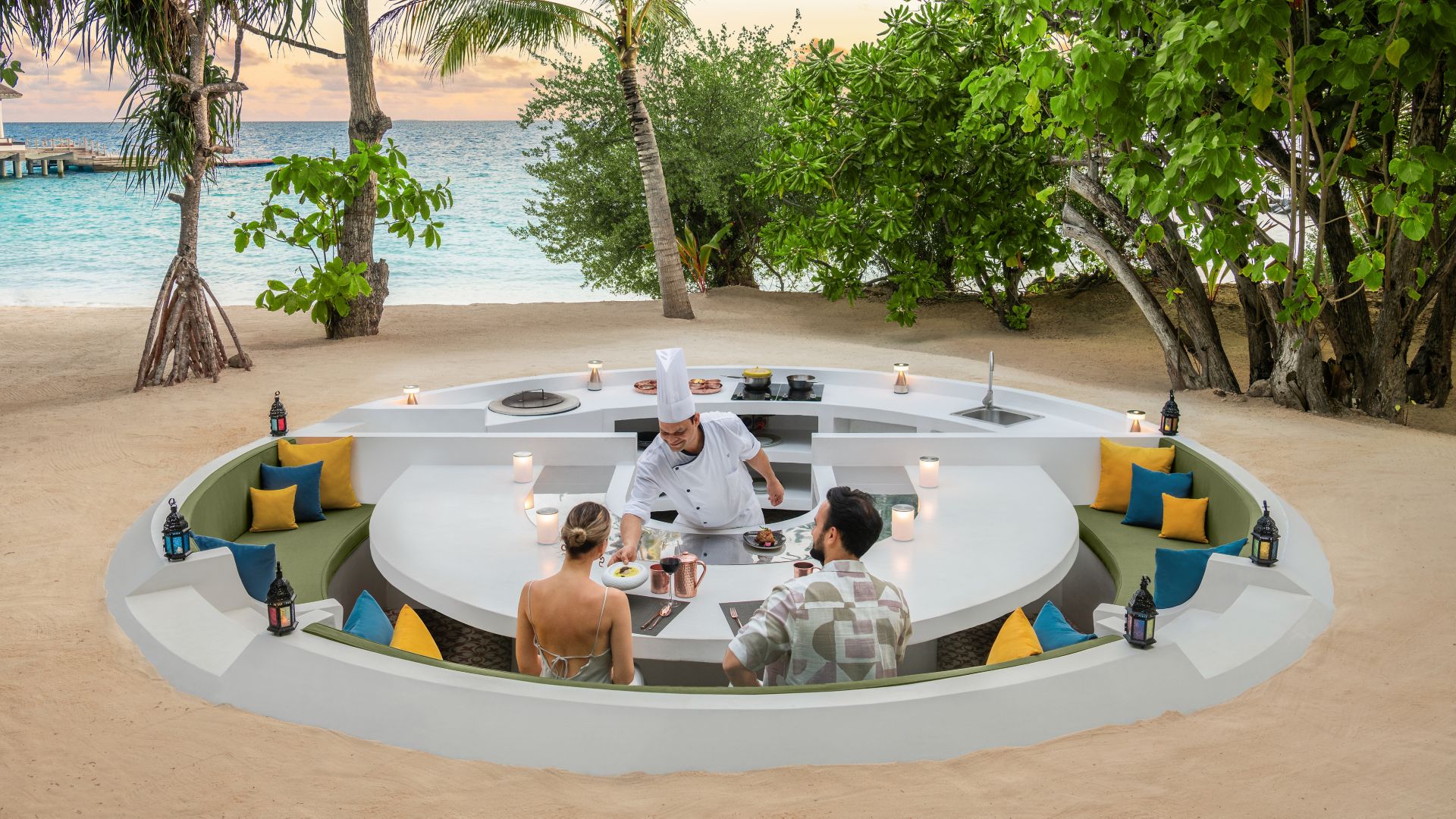 The luxury Maldives beach resort with overwater pool villas, unique dining adventure and spa experience.