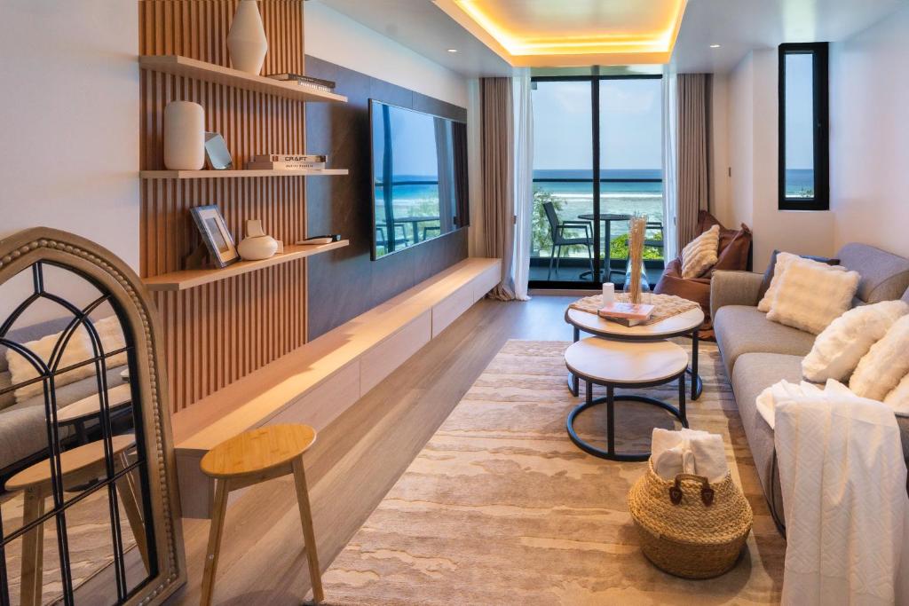 Just 15 minutes from the airport, our oceanfront location blends seamless convenience with a deep sense of escape. Each apartment is thoughtfully designed for longer stays and quieter moments — with private balconies, fully equipped kitchens, and soft, coastal finishes that mirror the soul of the Maldives.